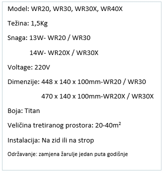 Modeli: WR20, WR30, WR30X, WR40X (modeli X povećavaju učinkovitost za 10m2)